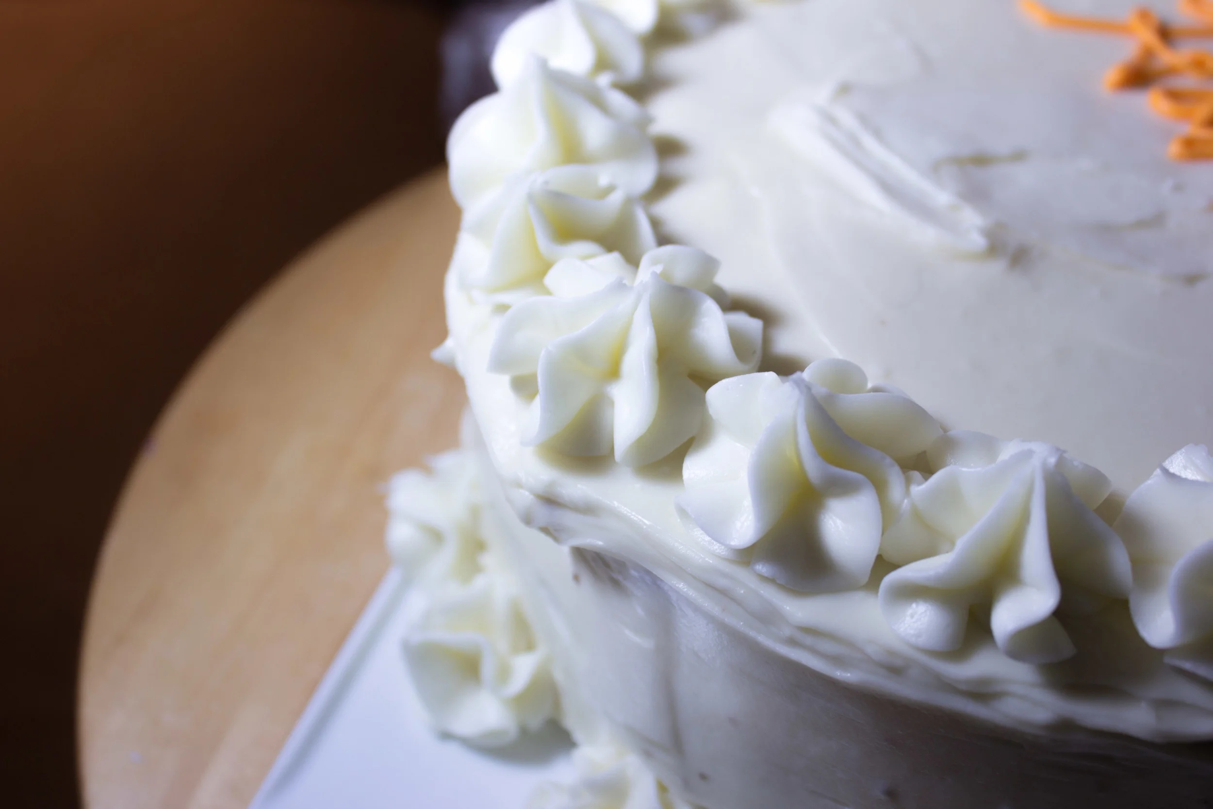As for the topping, the cream cheese frosting was a great complement to the cake because it's tangy and cuts through the sweetness of the molasses and the spiciness of the ginger, cinnamon, cloves and allspice. I chose to decorate with large piped stars, mellowcreme pumpkins (because they are my dad's fav-- not because there's pumpkin in it), and of course the obligatory 'Happy Birthday' text. All that was because it was a birthday cake, so you can make it simpler or even more complicated than I did.